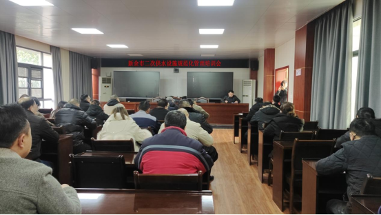 為進一步落實市委市政府關(guān)于創(chuàng)建國家衛(wèi)生城市工作的總體部署要求,切實提高我市生活飲用水管理水平,1月5日新余市水利局邀我司聯(lián)合開展了城區(qū)二次供水設(shè)施規(guī)范化管理培訓(xùn)會。此次培訓(xùn)會由市水利局二級調(diào)研員胡振南主持,我司業(yè)務(wù)部李正明與技術(shù)部伍松代表授課,參會人員有新余市內(nèi)各學(xué)校、醫(yī)院、酒店、賓館以及小區(qū)物業(yè)等負責(zé)人。